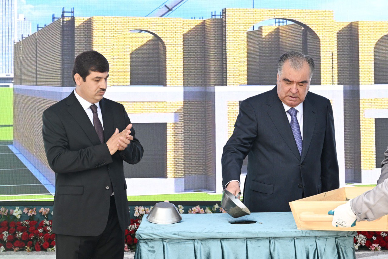 Далее Эмомали Рахмон участвовал в закладке первого камня в фундамент Международного университета туризма и предпринимательства Таджикистана.