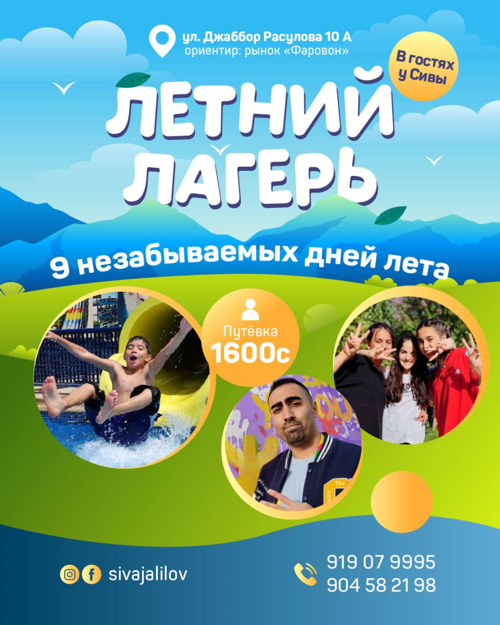 Стоимость: 1800 сомони за 9 дней. Имеется скидка — за второго ребёнка 3%, за третьего и более 6%.