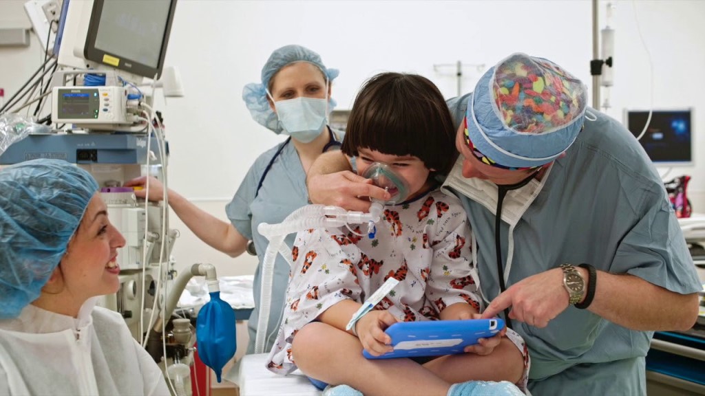 Сначала ребёнку в игровой форме даётся специальная маска, через которую он дышит. Через маску подают лёгкий газ Севоран и ребёнок засыпает. После врачи ставят катетер и вводят наркоз внутривенно.