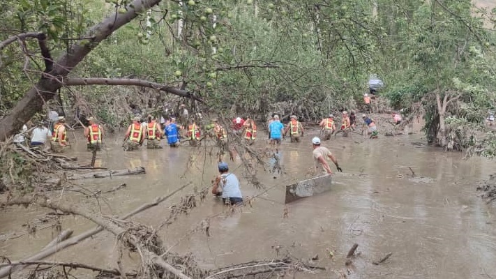 Селевые потоки в Ноокатском районе затопили десятки жилых домов, обрушили линии электропередачи и мост на дороге Ош — Баткен — Раззаков. В регионе объявлен режим чрезвычайной ситуации. К работам по устранению последствий стихийного бедствия привлечены сотни спасателей и множество единиц техники, включая вертолеты Минобороны. Специалисты продолжают эвакуацию людей из зоны подтопления.