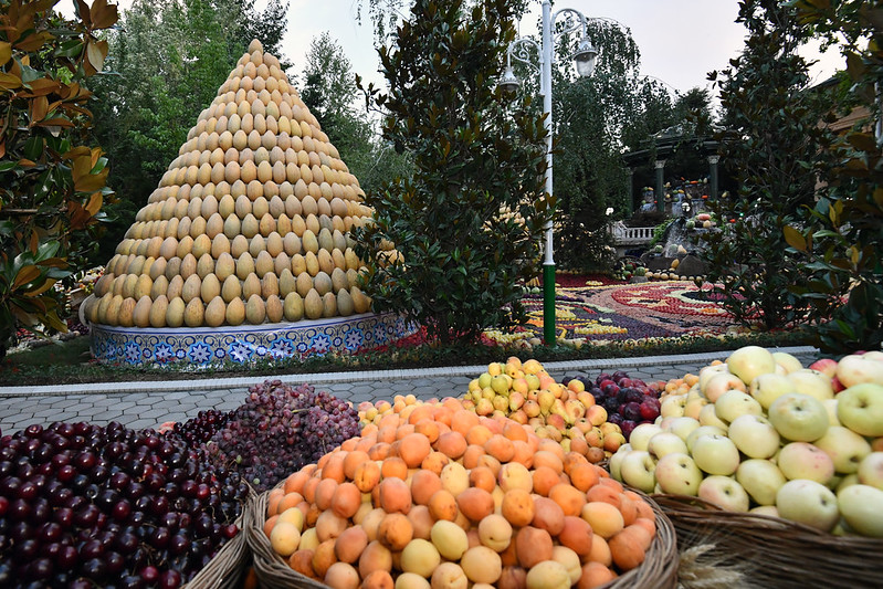 Вечер дружбы прошел в неформальной атмосфере, где также была организована выставка свежей сельскохозяйственной продукции и национальных блюд, приготовленных в саду резиденции.