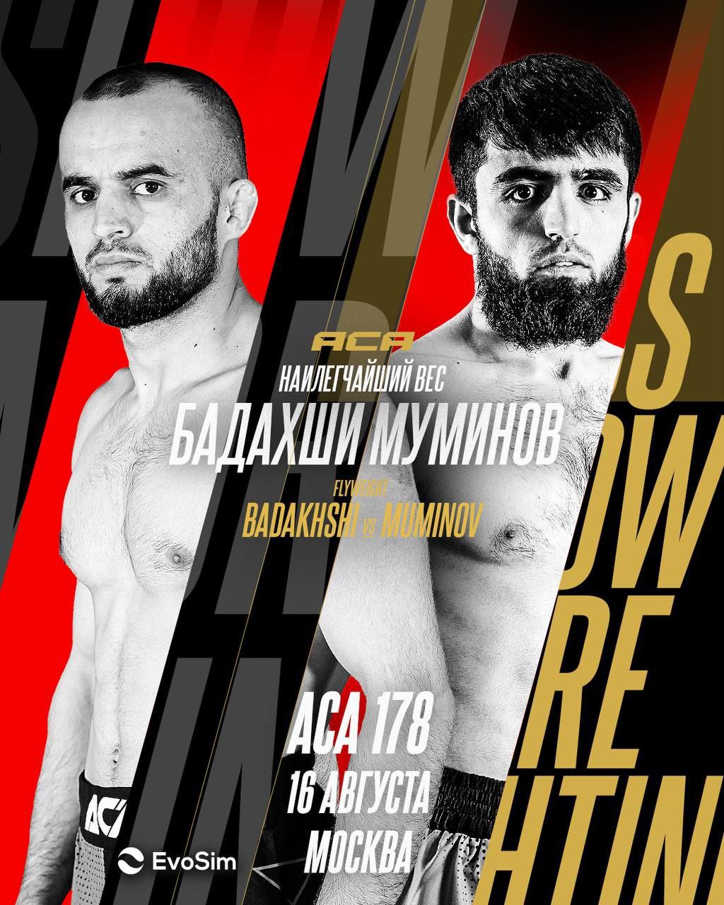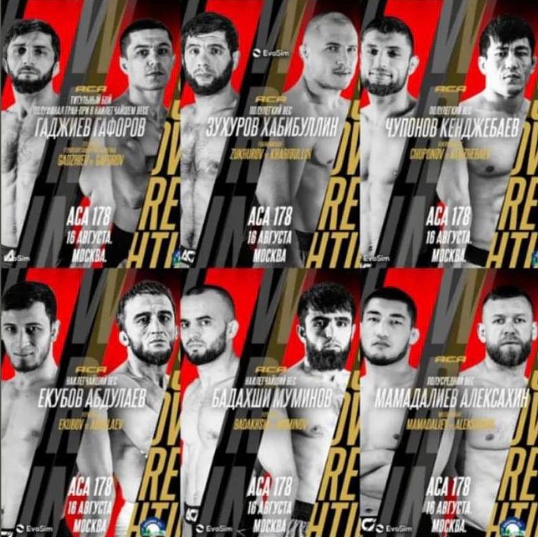 10 августа в Москве состоится турнир по смешанным единоборствам ACA 178, главным событием которого станет бой в тяжелом весе между Евгением Гончаровым и Адамом Богатыревым. Там же состоятся несколько боев с участием таджикских спортсменов.