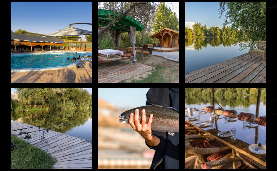 На территории расположено 7 прудов, где вы сможете самостоятельно выловить рыбку — и сазана, и осетра, и золотую форель и другие виды рыб.