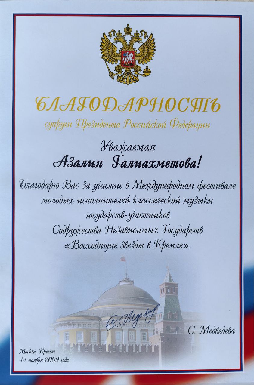 Защита диссертации состоялась в РАМ им. Гнесиных, и Азалии Галиахметовой была присвоена ученая степень кандидата искусствоведения.