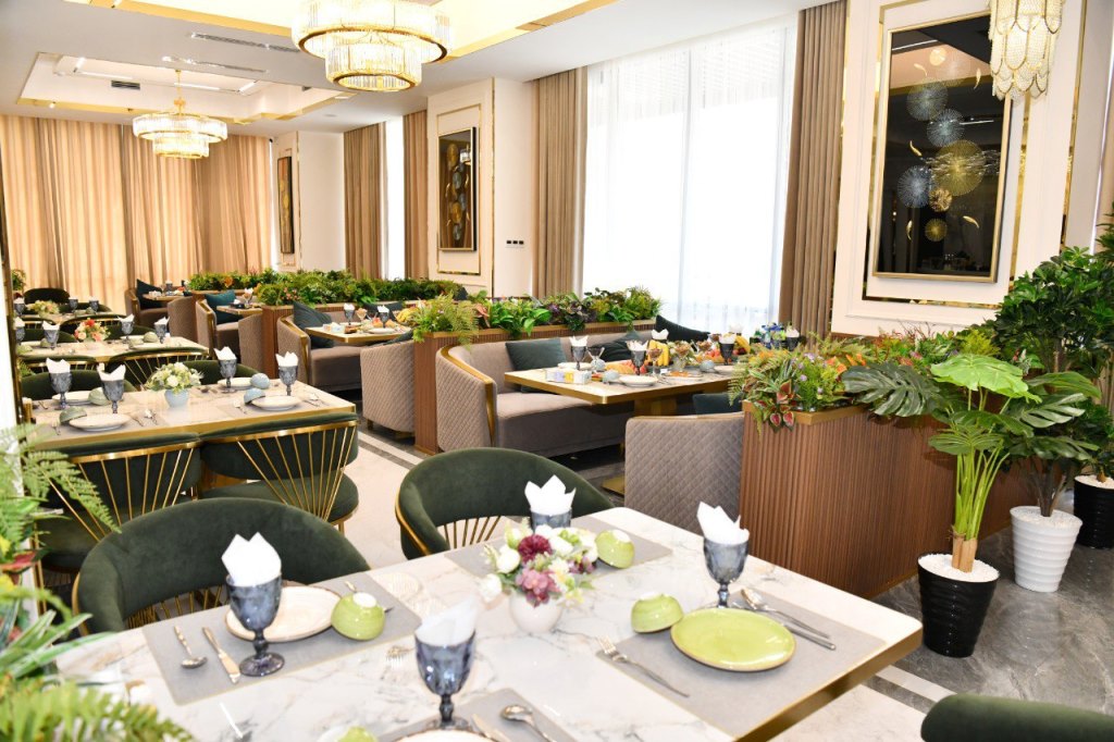 В ресторане имеется возможность обслуживать одновременно более 500 человек, которым будут предлагать до 100 видов блюд и салатов национальной и европейской кухни, в том числе около 20 видов блюд из рыбы.