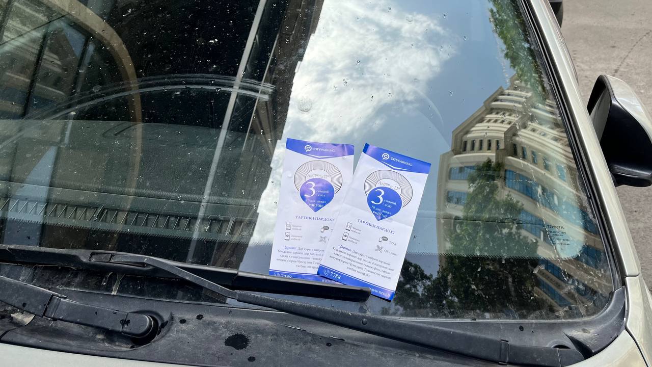 Сегодня сотрудники «Азия-Плюс» заметили на лобовых стеклах машин, припаркованных у близлежащих дорог и домов, листовки с информацией о работе платных парковок от компании NERU. Такой способ распространения информации раньше широко использовался, теперь компании не часто прибегают к такому методу рекламы.