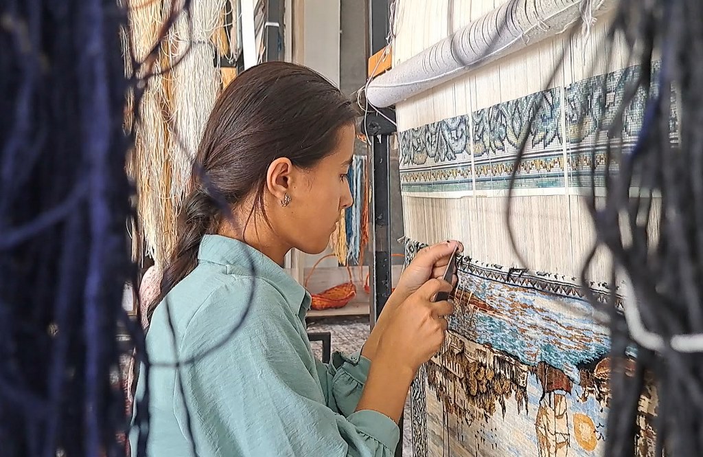 В летнее время в цеху работают в основном девочки. После бесплатного обучения искусству прядения ковра юные мастерицы сразу же садятся за станок. За свой труд каждая из них получает сдельную оплату, ведь сотканные ими ковры также в очереди на реализацию.