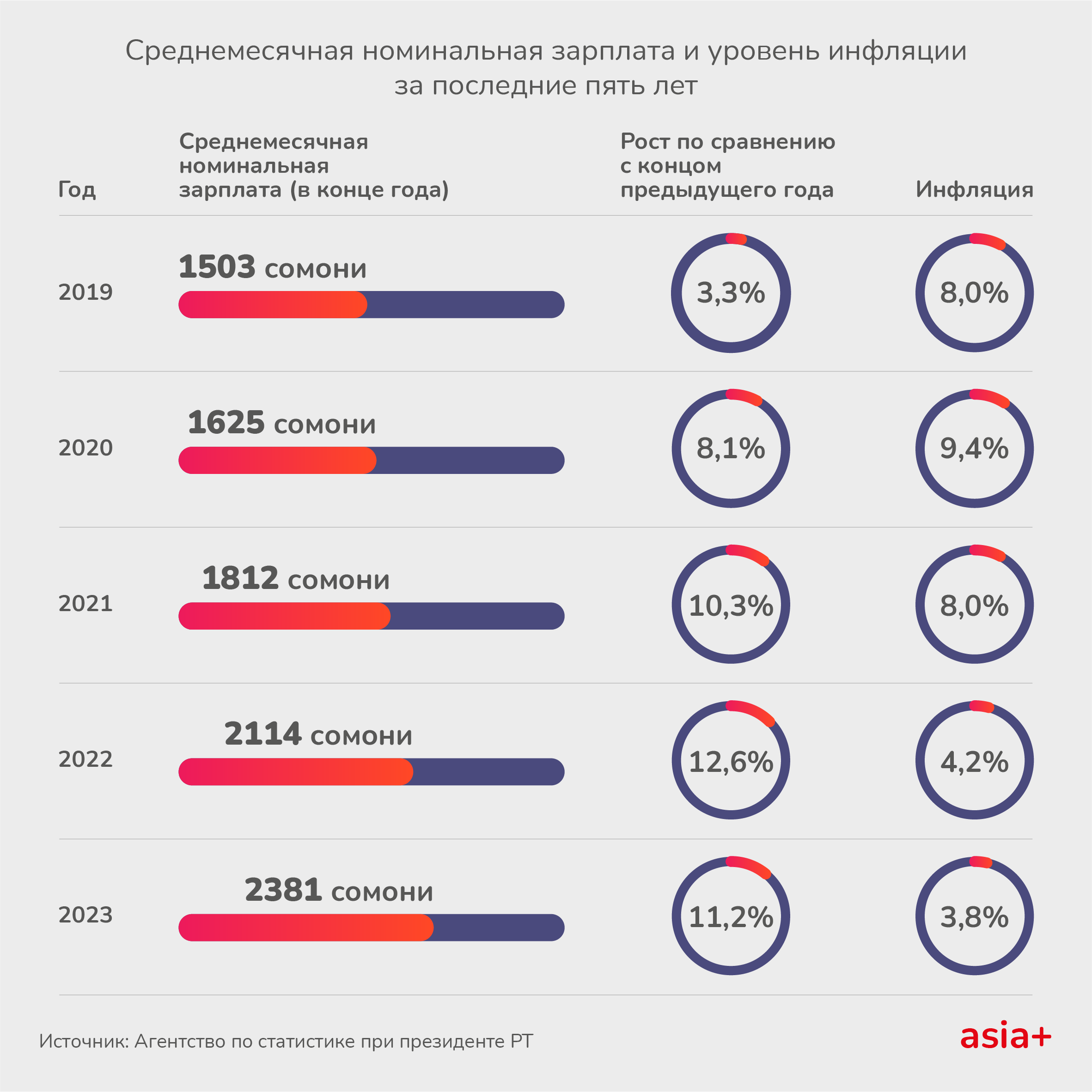 Несмотря на ежегодное повышение оклада бюджетников, размер средней зарплаты в Таджикистане остается в разы ниже, чем в других странах Центральной Азии, которая считается одним из наиболее бедных регионов мира.