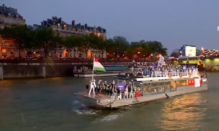 После этого началось лодочное шествие по Сене с делегациями сборных, которые примут участие в Олимпиаде. Спортсмены проплыли по реке от Аустерлицкого до Йенского моста. Лодки проплыли мимо самых известных мостов и достопримечательностей города, включая собор Нотр-Дам и Эйфелеву башню.