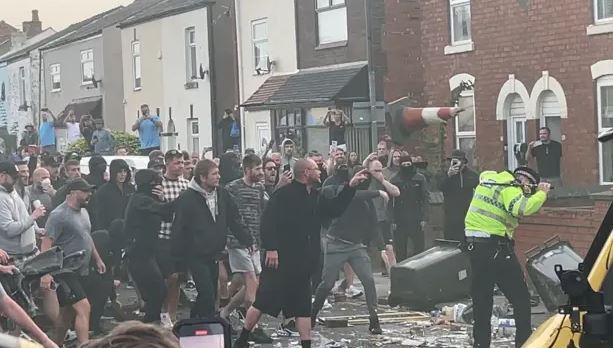 Несколько сот мужчин, предположительно английских радикальных националистов, начали забрасывать камнями, бутылками и другими предметами местную мечеть и пытавшихся помешать им полицейских, затем подожгли микроавтобус полиции и мусорные контейнеры.