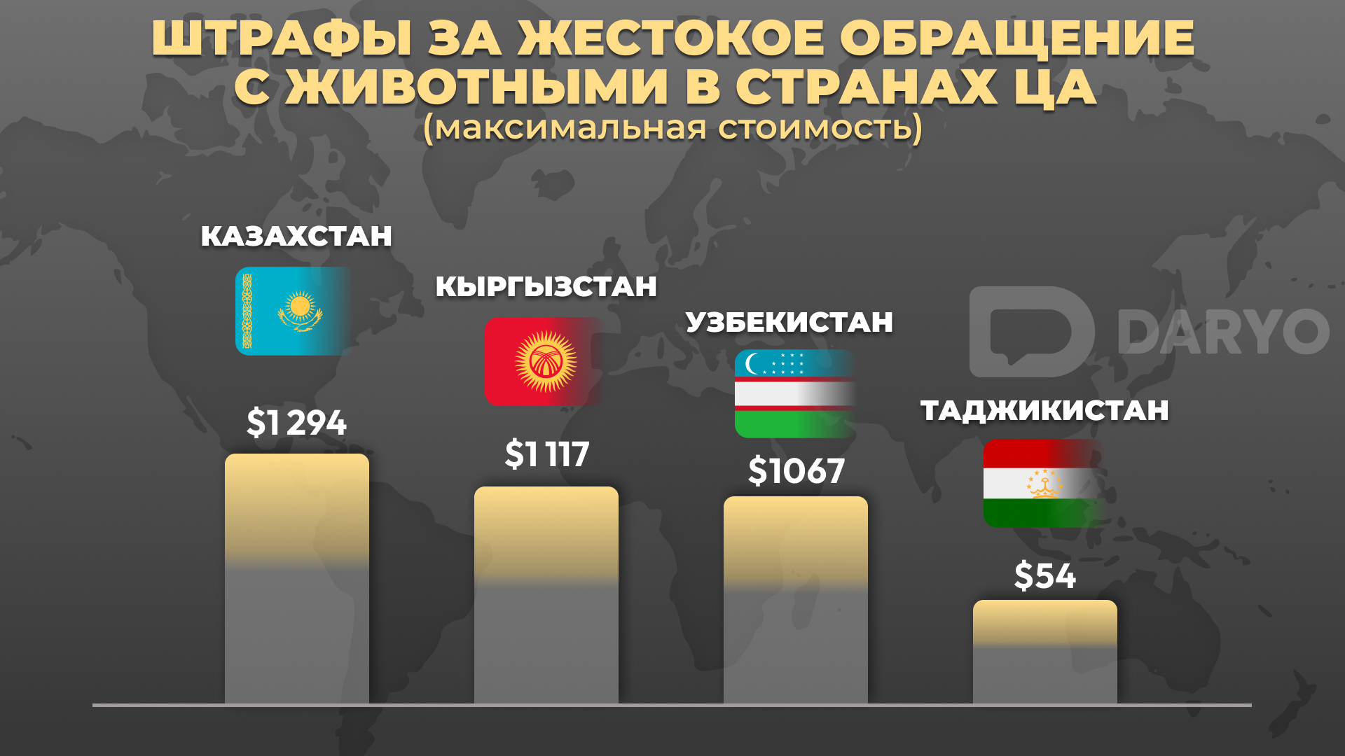 Сегодня в Таджикистане ответственность за жестокое отношение к животным регулируется статьей 277 Кодекса об административных нарушениях и наказывается штрафом.