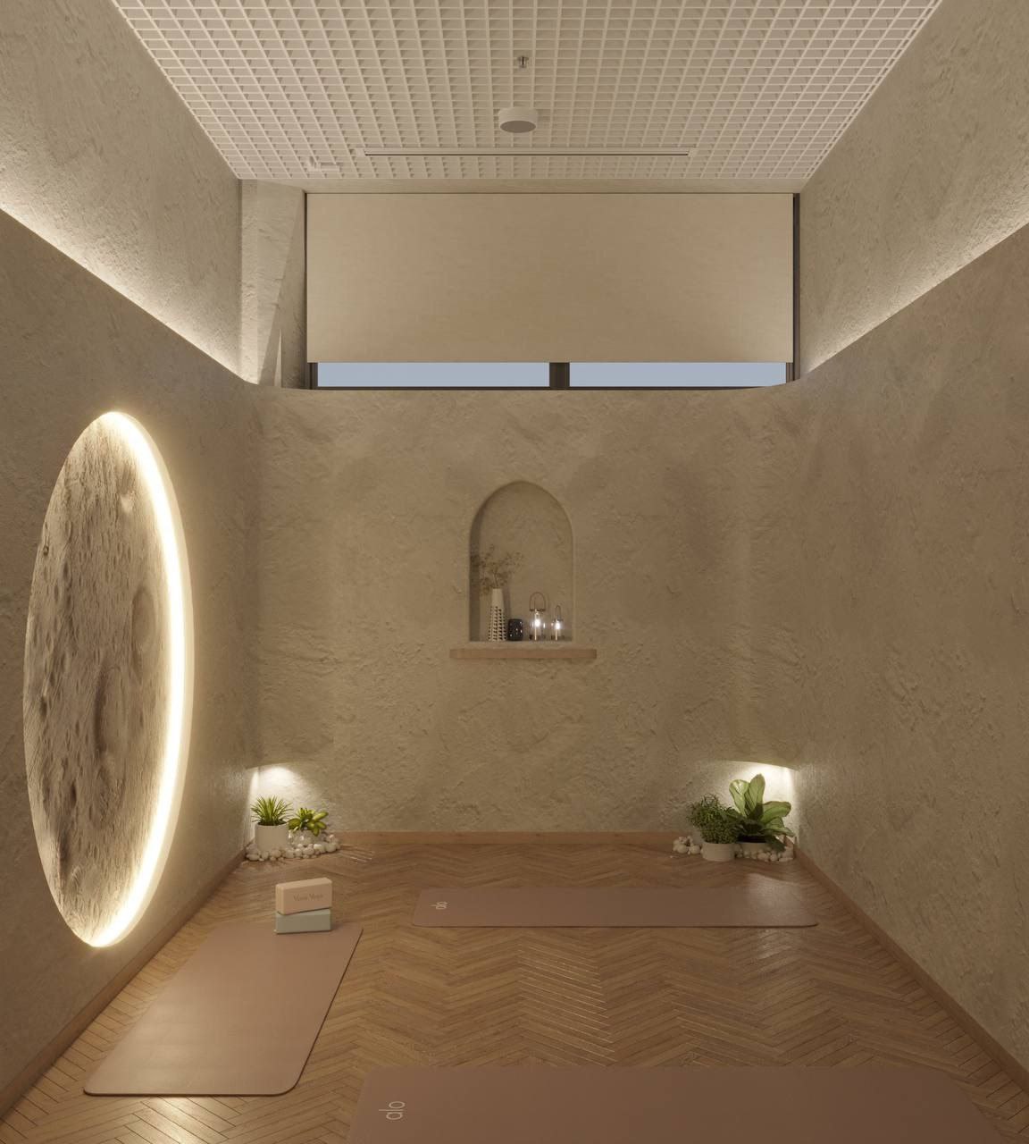 В центре два зала, первый – достаточно просторный, здесь проходят основные занятия. Второй зал чуть поменьше, он предназначен для медитаций. С центра комнаты на вас смотрит большая дизайнерская луна.