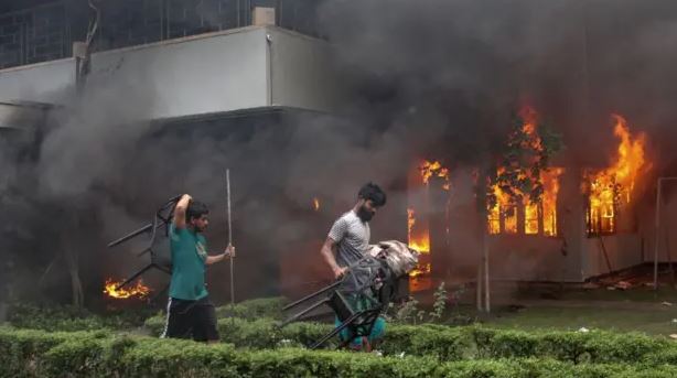 В понедельник многотысячная толпа ворвалась внутрь «Ганобхабана», резиденции премьер-министра. В воскресенье по меньшей мере 90 человек погибли в столкновениях между полицией и участниками акций протеста, которые требовали отставки Шейх Хасины.