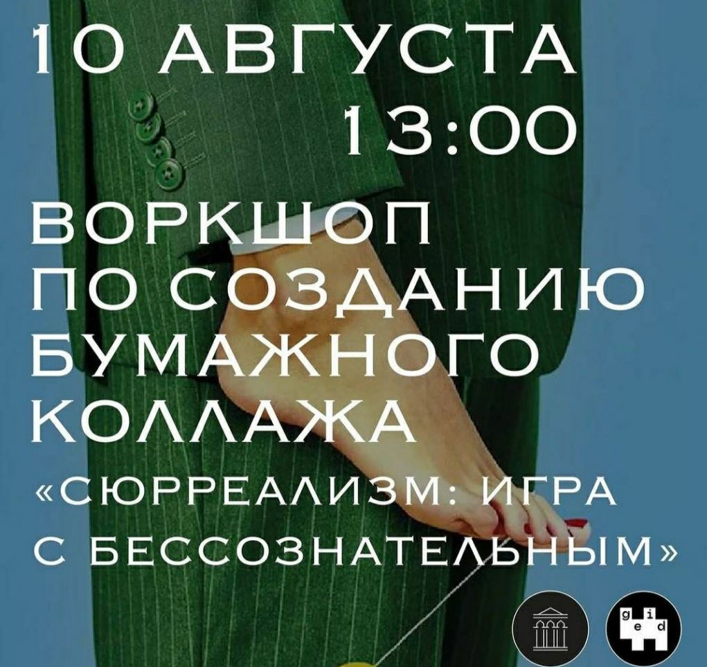 В здании театра Лахути 10 августа в 13:00 пройдёт воркшоп по созданию бумажного коллажа в эстетике сюрреализма от графического дизайнера, резидента GEID Егора Шабанова. Вы научитесь создавать выразительные коллажи, используя простые материалы, творческие методы художников-сюрреалистов и ваше креативное видение.