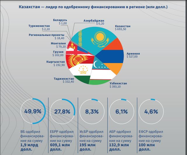 Все страны Центральной Азии, кроме Туркменистана, вошли в пятерку наиболее крупных получателей одобренного финансирования среди 11 стран Евразийского региона.