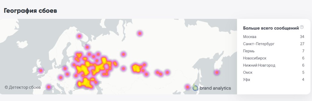 По данным сервиса «Сбой.рф» проблемы с YouTube наблюдаются в большинстве регионов России, а распределение претензий по состоянию на 12 августа выглядит так: