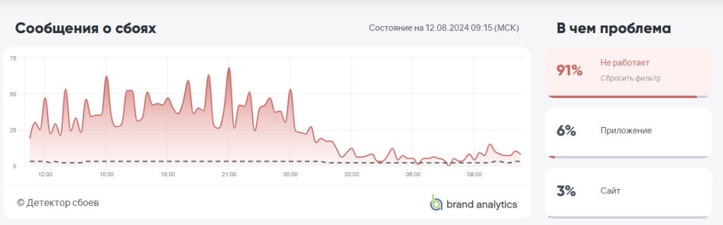 Вот что показывает другой сервис — Brand Analytics по состоянию на 12 августа.