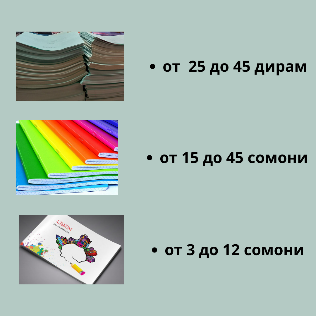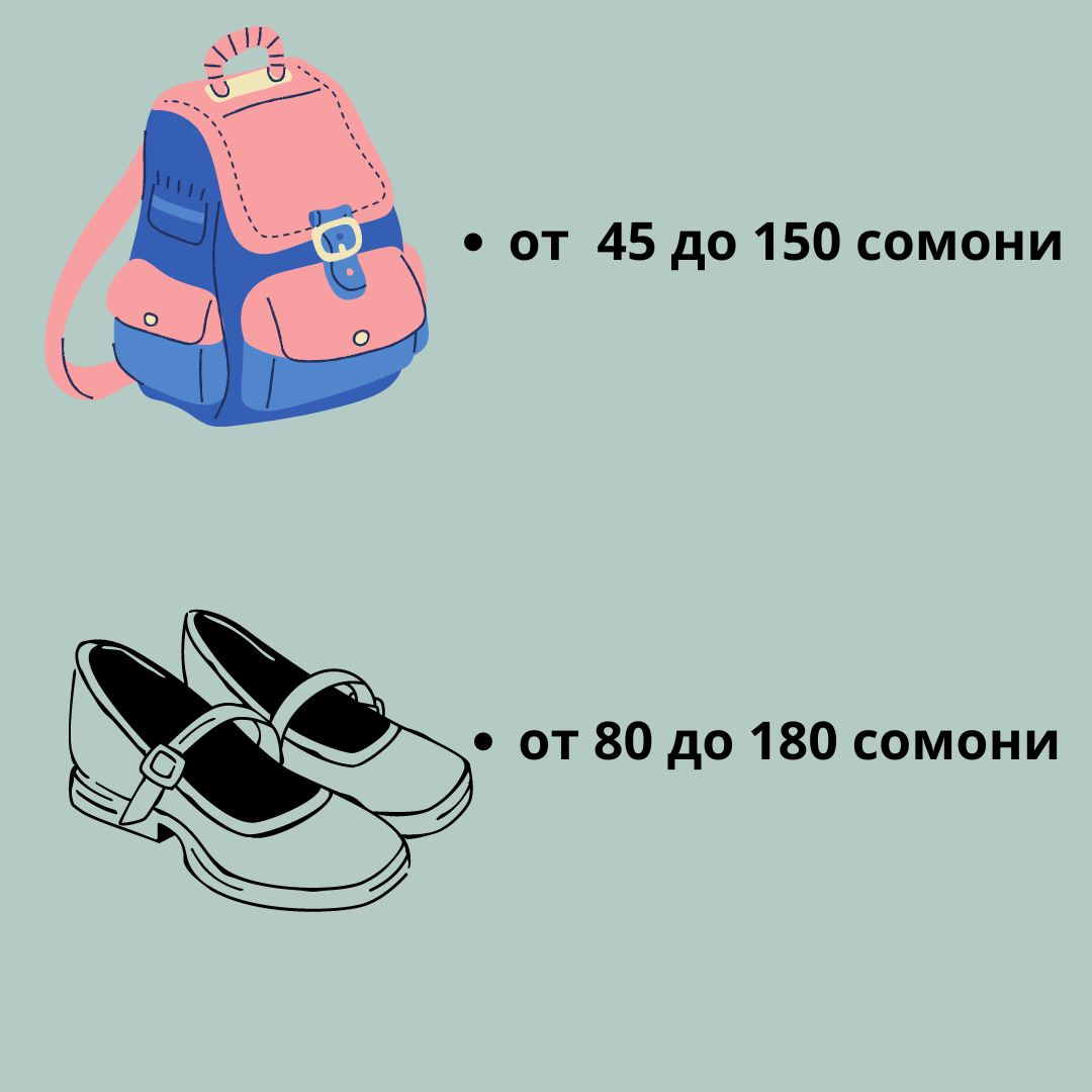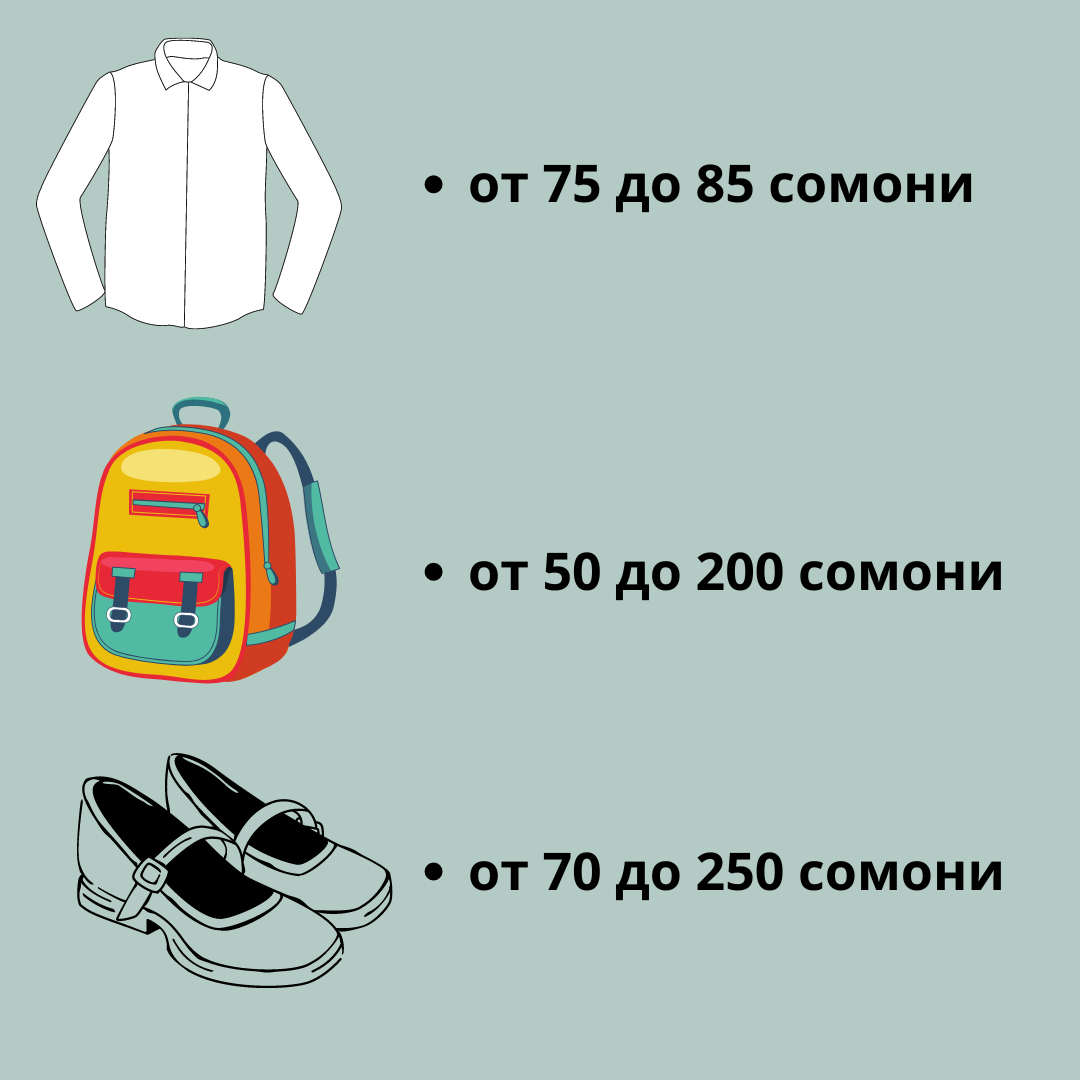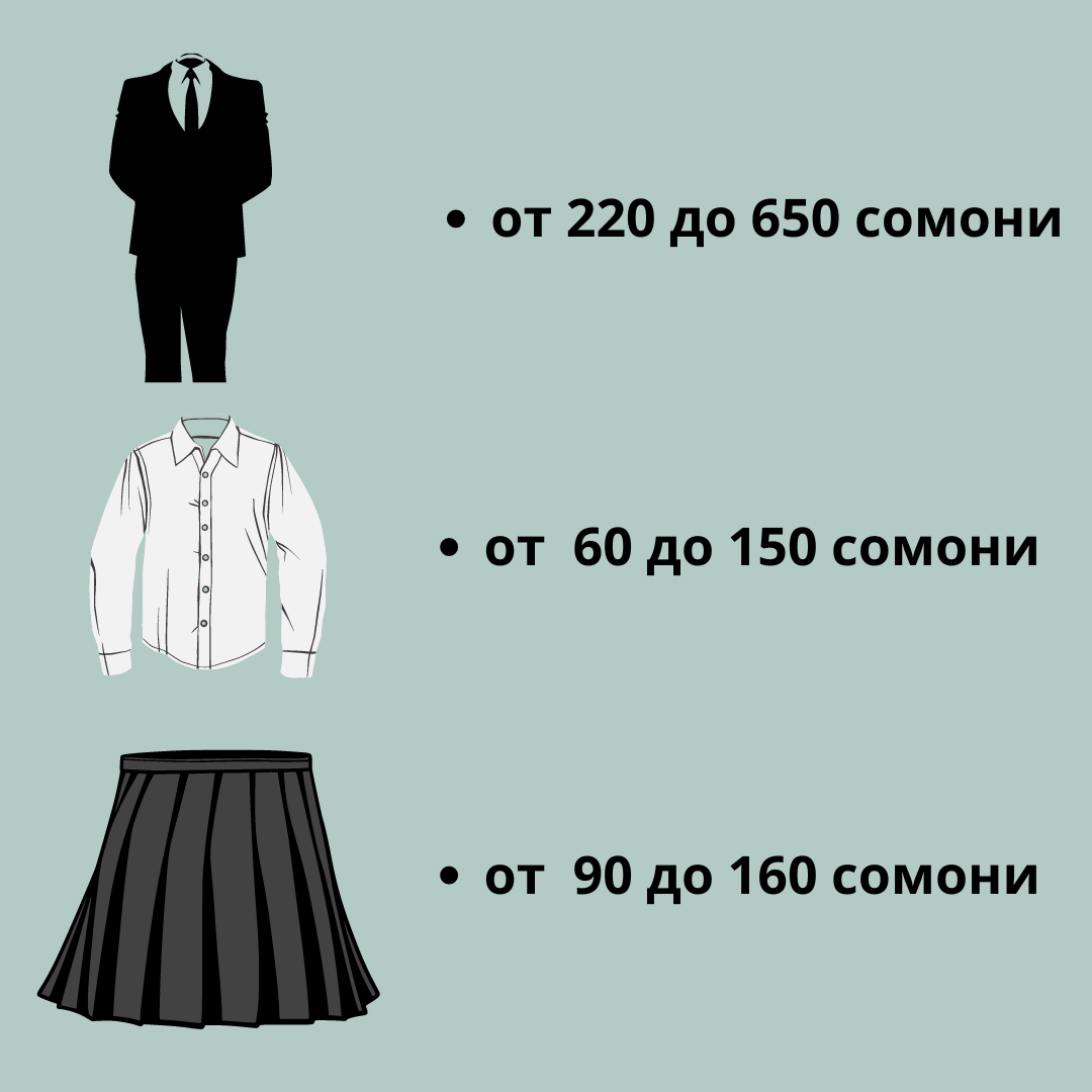 Стоимость школьного костюма составляет от 250 до 400 сомони, белая рубашка стоит от 60 до 100 сомони.
