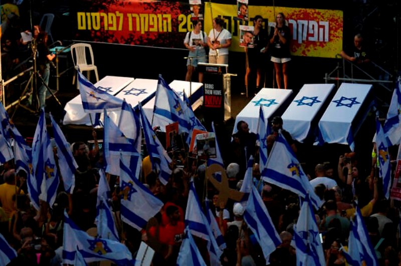 Бастующие требуют от властей страны добиться договоренности с ХАМАС о немедленном прекращении огня и освобождении заложников, удерживаемых в Газе.