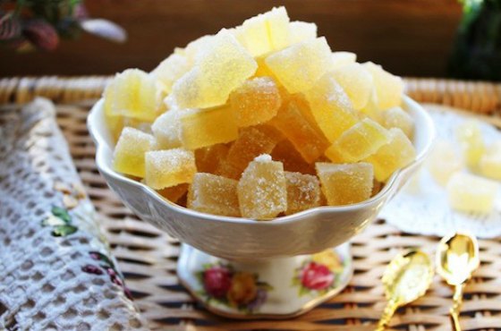 Дынные конфетки — оригинальное лакомство. Если соблюдать тонкости во время приготовления, то нежная мякоть дыни не разварится, а пропитается сиропом и превратится в жевательный мармелад. Такой десерт можно давать детям, ведь в нем нет никакой «химии», но следует учитывать его высокую калорийность.