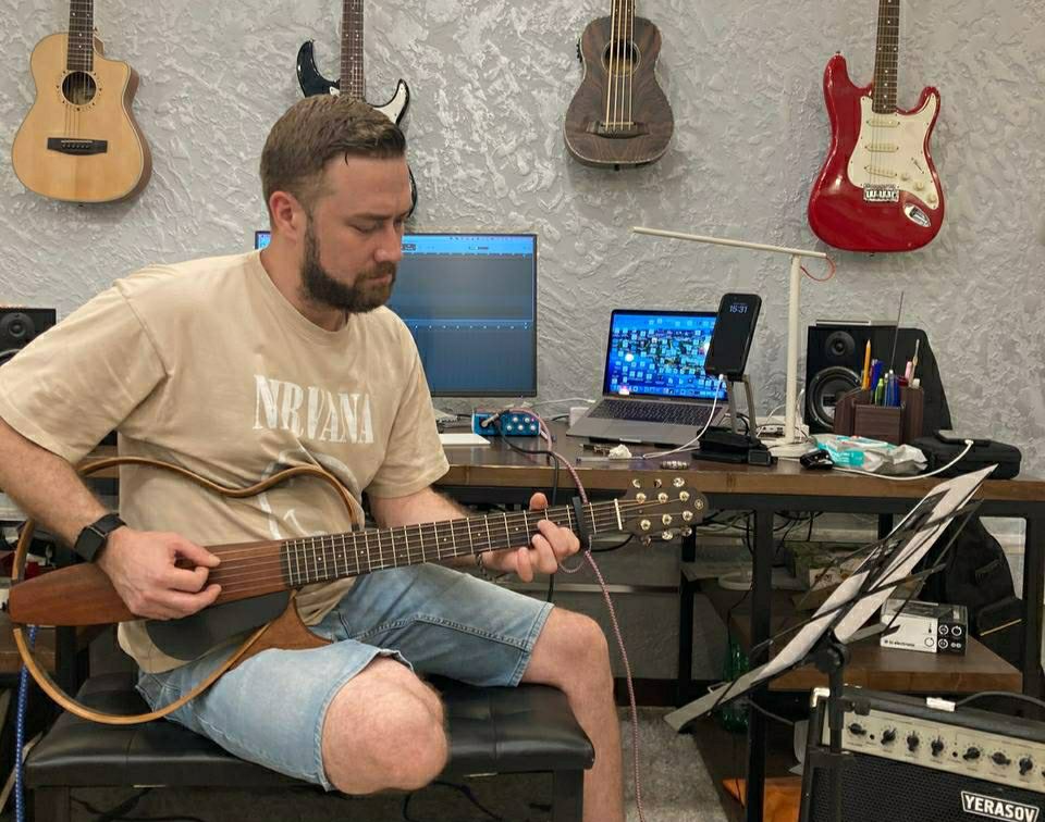 Кстати, свою «первую» гитару он сделал из… веника, натянув на нее струны из лески и «лабал» на ней в одиночестве под любимых Deep Purple и AC/DC. Тогда он не мог себе представить, что к 35 годам у него будет целая коллекция всевозможных гитар, количество которых он затрудняется назвать. Есть среди них и гитара из веника, подаренная одним из учеников на память.