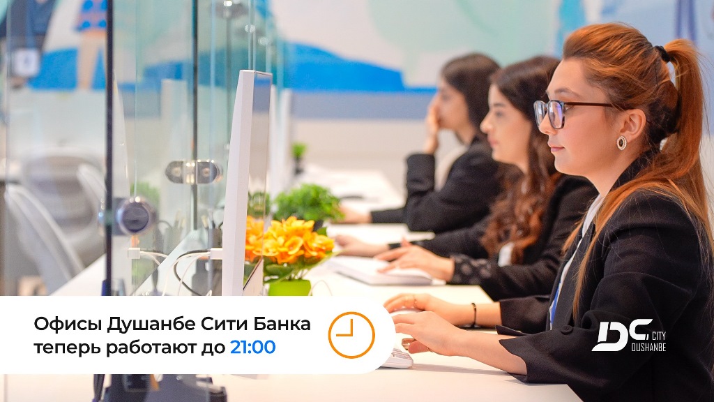 Офисы Душанбе Сити Банка по всей республике теперь работают до 21:00.