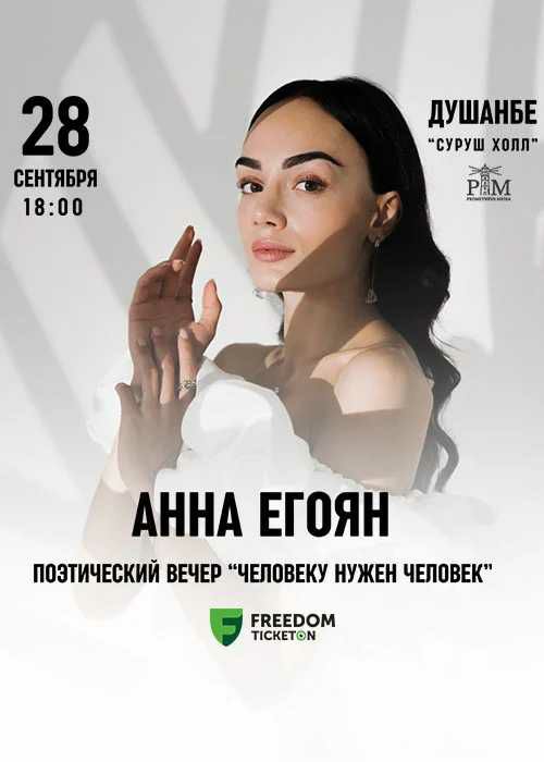 В «Кохи Суруш» 28 сентября в 18:00 состоится творческий вечер современной поэтессы и чтеца Анны Егоян, которая представит зрителям свою новую программу «Человеку нужен Человек». Прозвучат известные и любимые стихотворения поэтессы, а также произведения классиков и современных авторов.