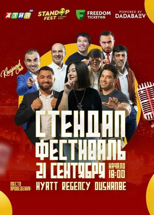В отеле Hyatt Regency Dushanbe 21 сентября в 18:00 выступят юмористы проекта Khujand StandUp в рамках большого стэндап-фестиваля. В программе: stand-up show, выступление хедлайнеров, световое танцевальное шоу, конкурсы и призы, красная дорожка и многое другое.