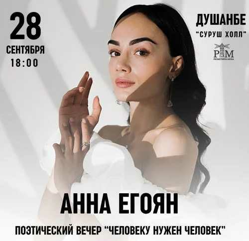 В «Кохи Суруш» 28 сентября в 18:00 состоится творческий вечер современной поэтессы и чтеца Анны Егоян, которая представит зрителям свою новую программу «Человеку нужен человек». Прозвучат известные и любимые стихотворения поэтессы, а также произведения классиков и современных авторов.