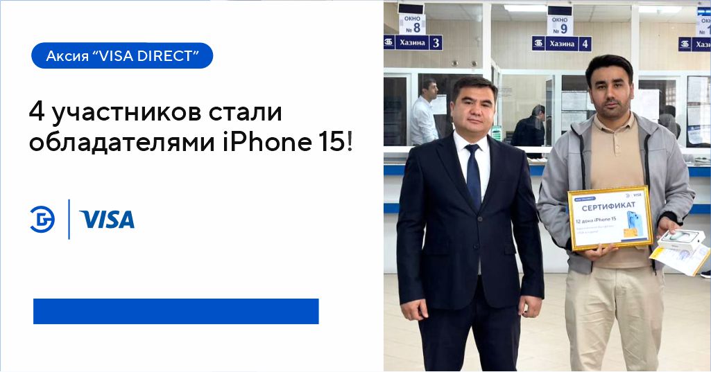 Четверо счастливчиков — победителей первого тура получили iPhone 15. Руководство банка в торжественной обстановке вручили призы победителям, которыми стали: