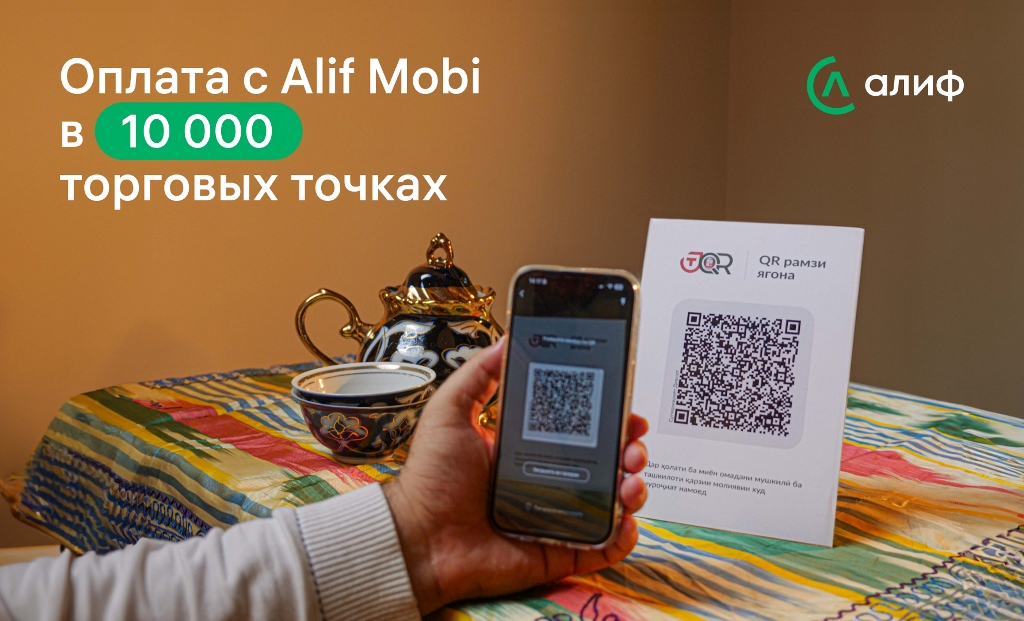 Alif Mobi также поддерживает оплату по единому QR-коду, которым ежедневно пользуются десятки тысяч клиентов.