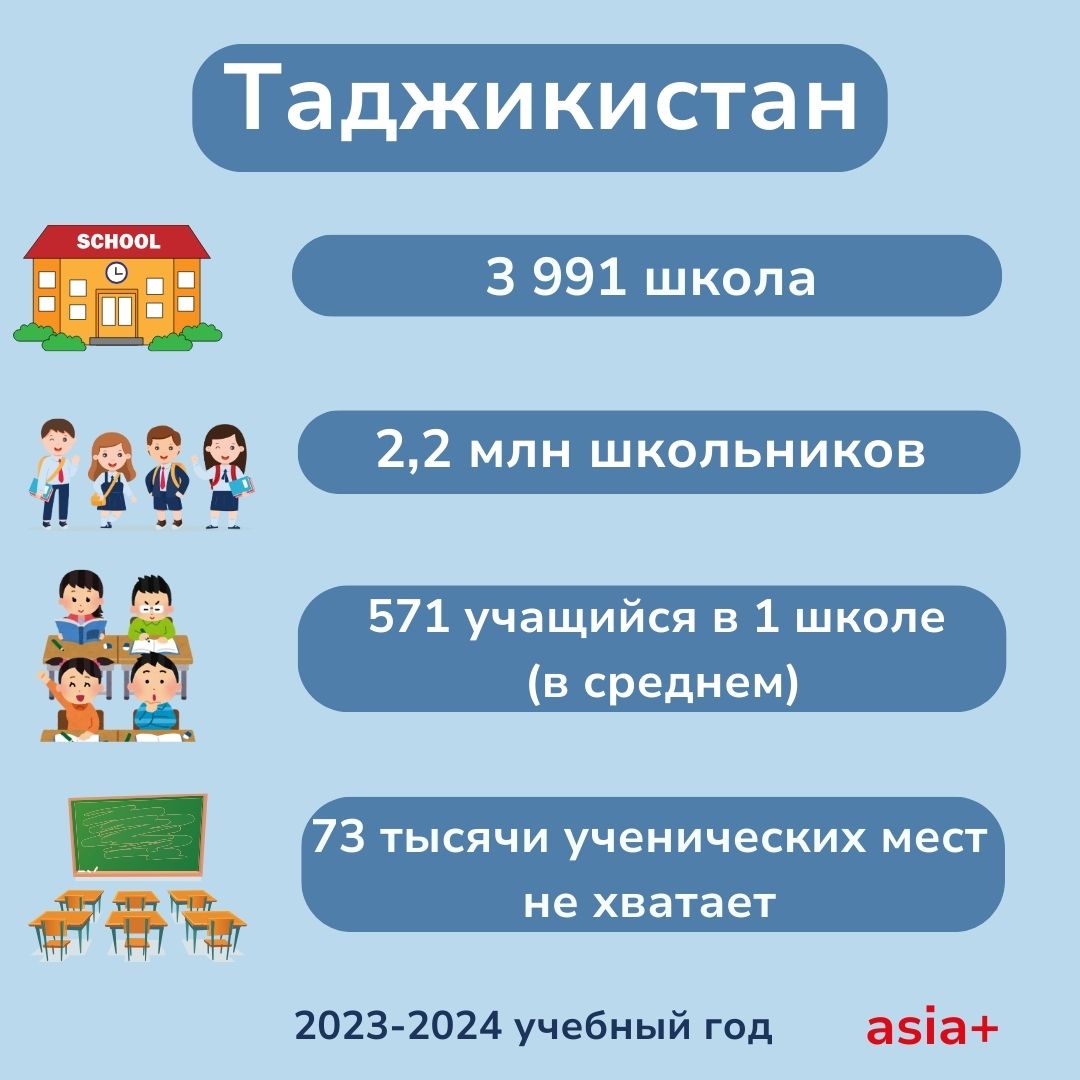 Президент Таджикистана Эмомали Рахмон сообщил, что в 2024 году запланировано строительство и реконструкция 370 зданий общеобразовательных учреждений, рассчитанных на более чем 150 тысяч учащихся. Некоторые из этих школ уже сданы в эксплуатацию.