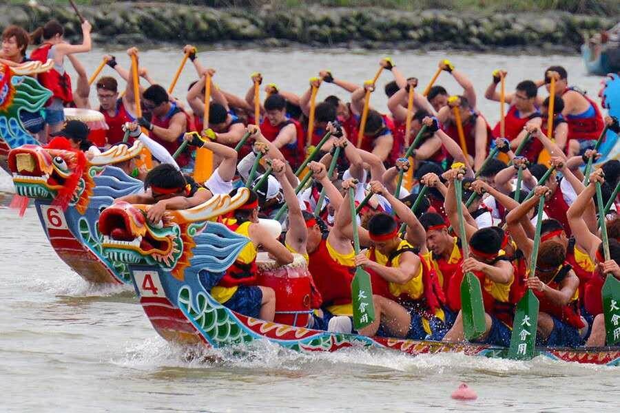 Главное событие фестиваля — гонки на длинных деревянных лодках, украшенных головой и хвостом дракона. Команды гребцов соревнуются друг с другом под барабанный ритм, создавая впечатляющее зрелище. Также во время фестиваля люди едят рисовые пирожки (цзунцзы), обернутые в листья бамбука, чтобы почтить память Цюй Юаня.