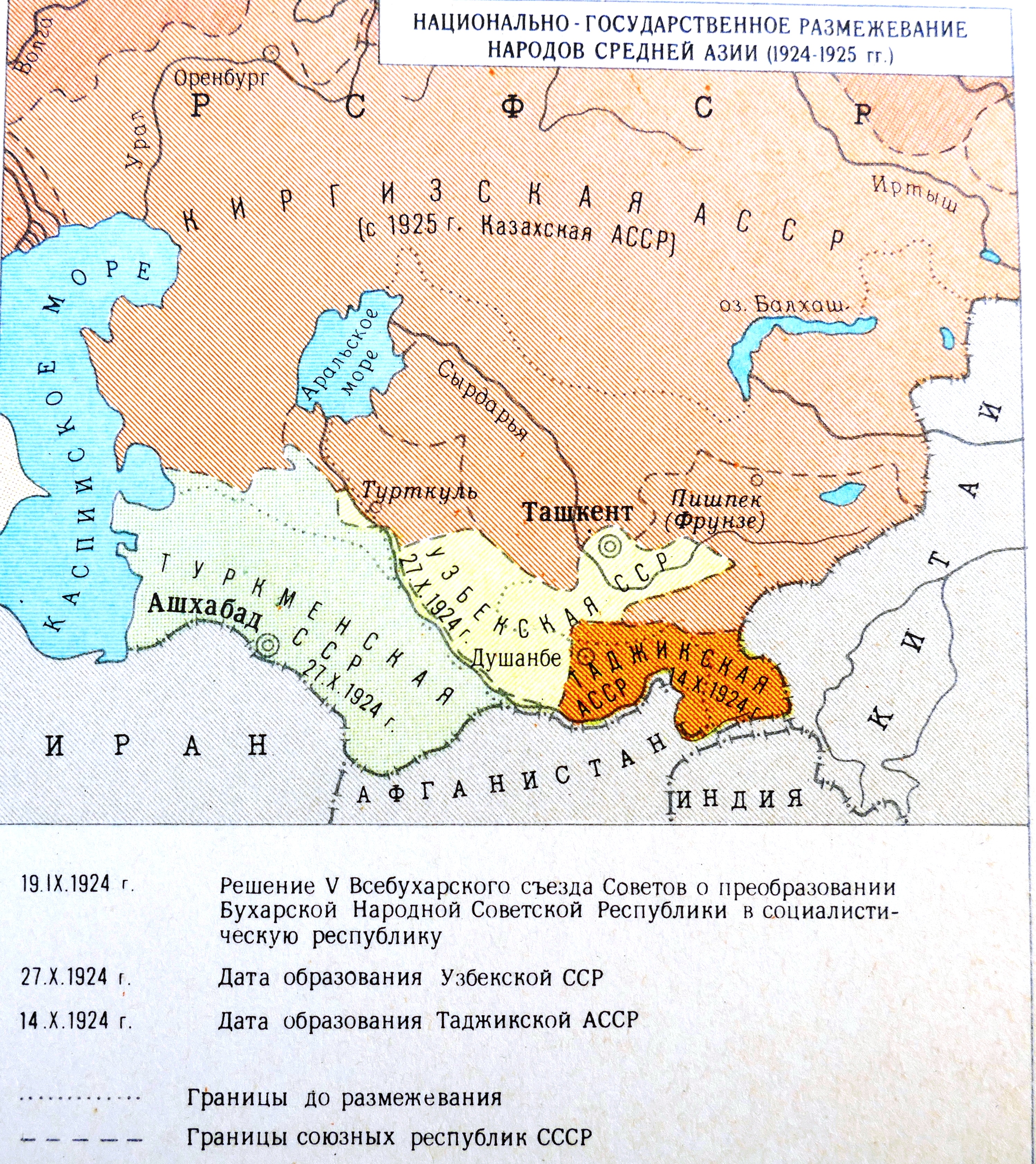 В 1924-1925 годах в Центральной Азии произошел процесс, названный национально-территориальным размежеванием. Суть его заключалась в том, в составе СССР были выделены национальные административно-территориальные единицы, получившие статус союзных и автономных республик, областей и округов.