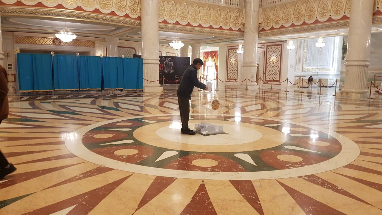 Один из участков, который посетили журналисты, был в государственном театре оперы и балета «Астана Опера». Здесь было более торжественно, больше голосующих, больше международных наблюдателей и много местных журналистов.