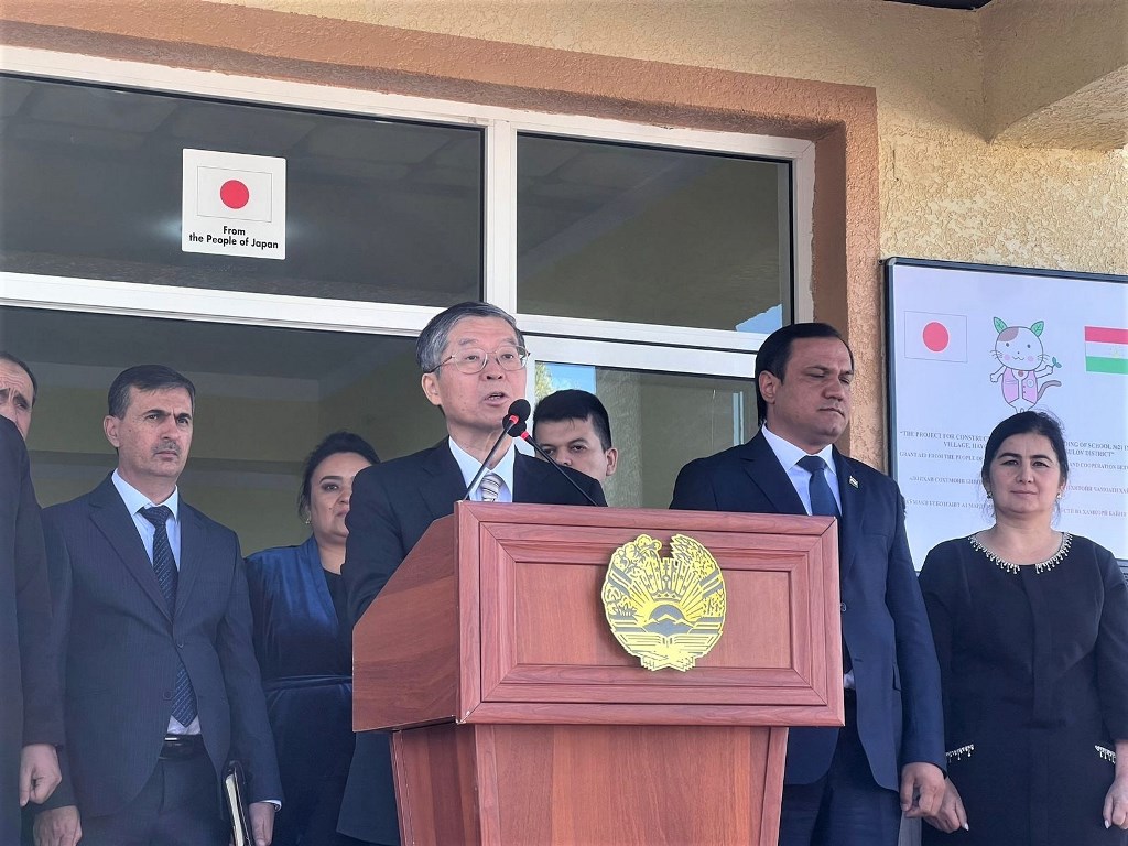 Во время церемонии посол, поздравляя председателя района, учащихся и жителей села с успешным завершением проекта, отметил, что Япония в течение более 30 лет с момента обретения Таджикистаном независимости оказывала содействие таджикскому народу как хороший друг в широком спектре сфер, и образование является одной из особенно важных отраслей двустороннего сотрудничества между Таджикистаном и Японией.