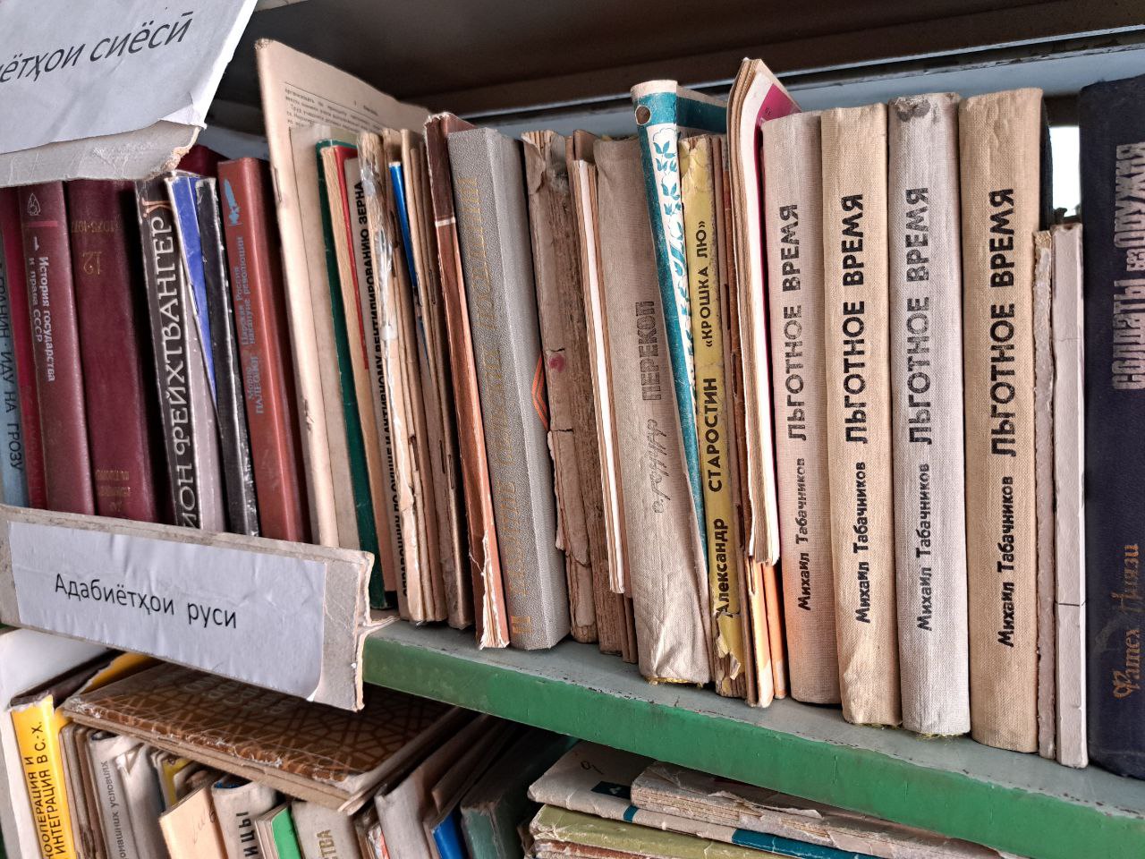 В публичной библиотеке Анзоба ассортимент книг достаточно разнообразный, но редко обновляемый. Книги в большинстве своем – наследие советских времен. С пожелтевшими страницами и запахом старины они аккуратно расставлены на стеллажах с подписанными табличками.