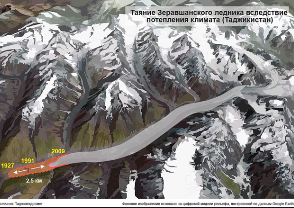 Прогнозируется, что к 2060-2080 годам объем воды от таяния ледника Зерафшан сократится, что может привести к его полному исчезновению и негативно сказаться на водном балансе не только в Таджикистане, но и по всей Центральной Азии.