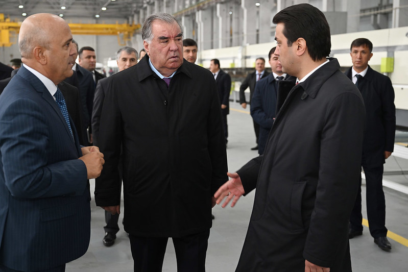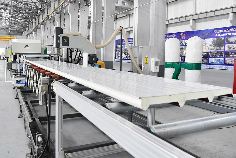 Сегодня же с участием главы государства и мэра Душанбе было запущено новое предприятие по производству сэндвич-панелей в районе Сино столицы. ОАО «Душанбе-Саноат» занимает площадь более 71,1 тыс. квадратных метров и использует импортное оборудование из Китая.