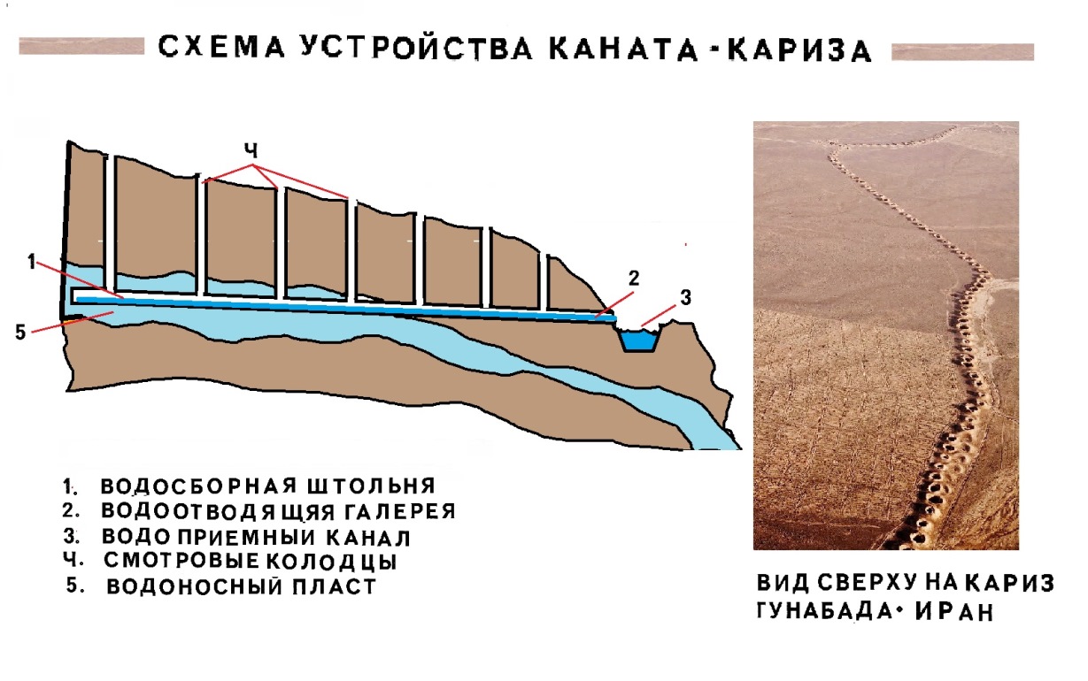 Они проявили высочайшее инженерное мастерство в прокладке сложных подземных каналов-канат, или кариз (корез – у таджиков), позволяющих доставлять воду на значительные расстояния, предотвращая большие испарения.