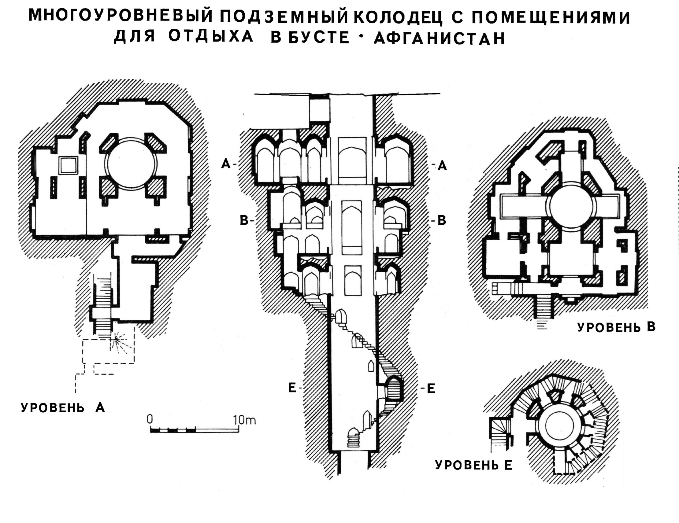Традиция возведения подземных сооружений в условиях жаркого климата на Востоке имеет древние корни. В непосредственной близости от афганского города Балх в цитадели древнего города Буст (XI век) до сих пор сохранилось уникальное подземное многоярусное сооружение – колодец диаметром 6 метров, углубленный в землю на 45 метров.