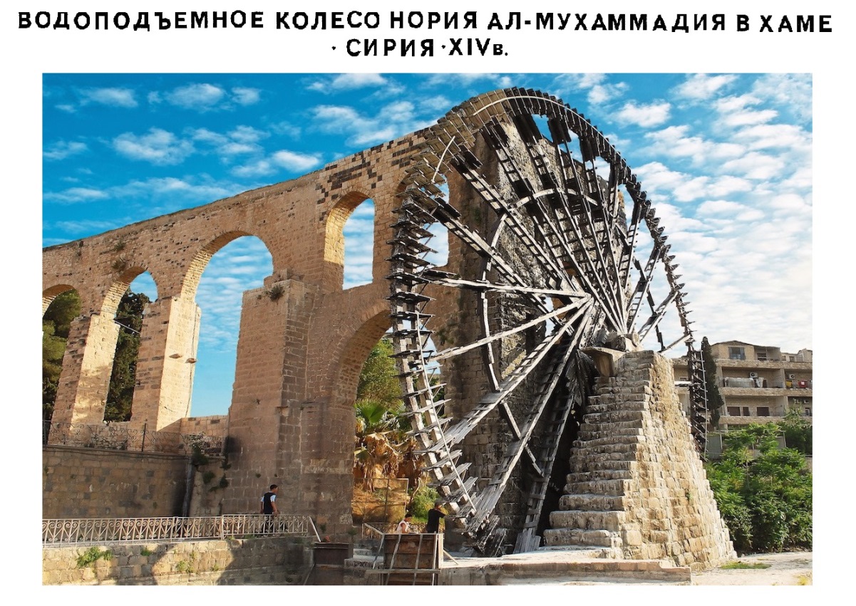 В наше время в Хаме, так же, как и тысячу лет назад, на реке Оронт такие колеса подают воду к городским садам. Из некогда 400 колес здесь сохранилось лишь 16.
