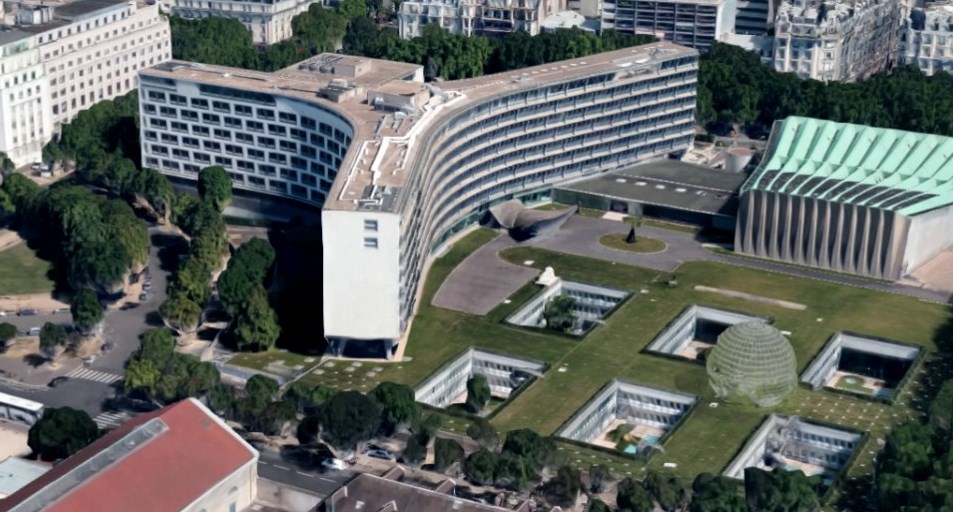 Комплекс в форме трехконечной звезды возведен на 72 бетонных колоннах. Он известен всему миру не только тем, что здесь размещается ЮНЕСКО, но и благодаря своим архитектурным достоинствам.