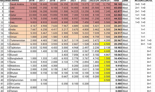 Таджикистан, у которого ещё есть два клуба во второй Лиге чемпионов, находится на строчку ниже Ливана, лишившегося своего единственного представителя. Чтобы обойти Ливан и вернуть квоту в два места, Таджикистану нужно набрать, как минимум, 1,4 балла.