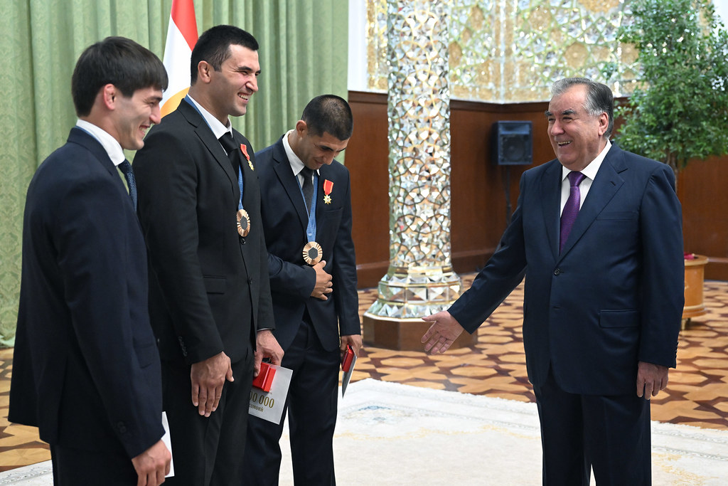 Он присваивает высшие воинские звания, дипломатические ранги иные специальные чины и звания; награждает граждан государственными наградами, присваивает государственные премии и почетные звания Таджикистана.