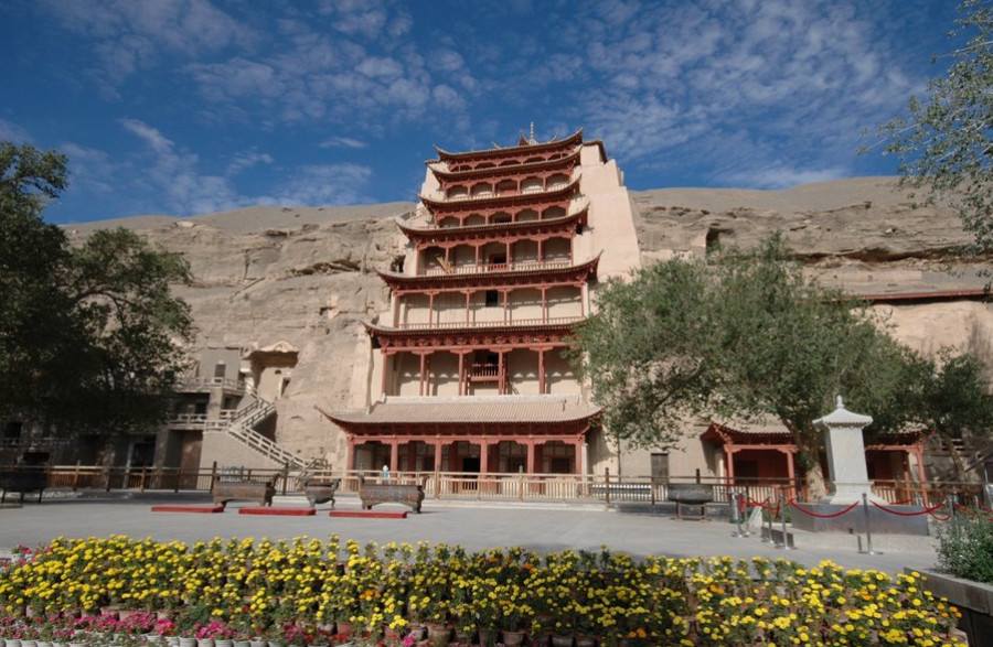 Сегодня комплекс включает 735 пещер, украшенных яркими фресками и скульптурами. Фрески площадью 45 000 квадратных метров изображают сцены из жизни Будды, буддийские мифы и повседневную жизнь древнего Китая, отражая смешение индийского, персидского и китайского стилей.