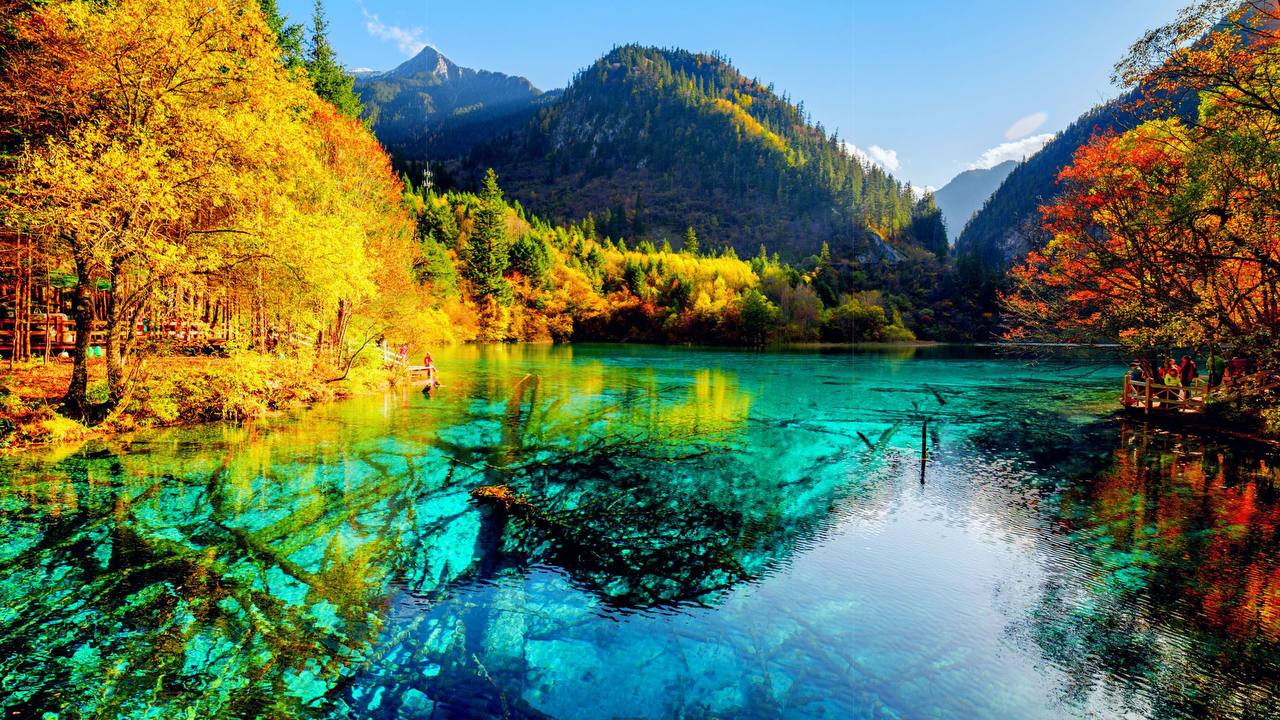 Цзючжайгоу особенно впечатляет осенью, когда зелень лесов сменяется палитрой красных, жёлтых и золотых оттенков, отражающихся в кристально чистой воде. Это место стало символом гармонии между человеком и природой.