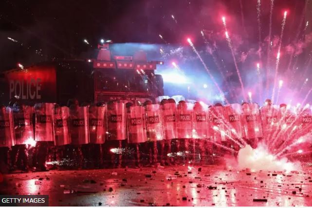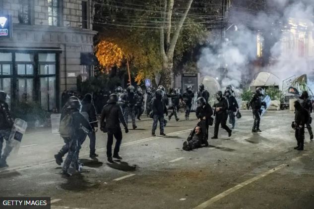 Грузинский премьер Ираклий Кобахидзе назвал протесты «нападением на конституционный строй страны» и обвинил в их организации европейских политиков и «пятую колонну».