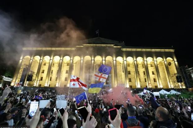 Каждый вечер демонстранты собираются около здания парламента в центре Тбилиси, а также проводят акции протеста в других городах страны.