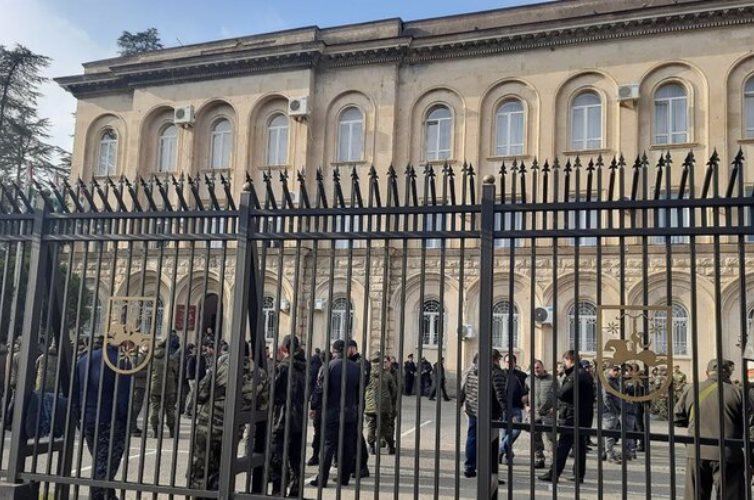 К собравшимся перед зданием парламента сторонникам оппозиции обратился депутат Народного Собрания Кан Кварчия.